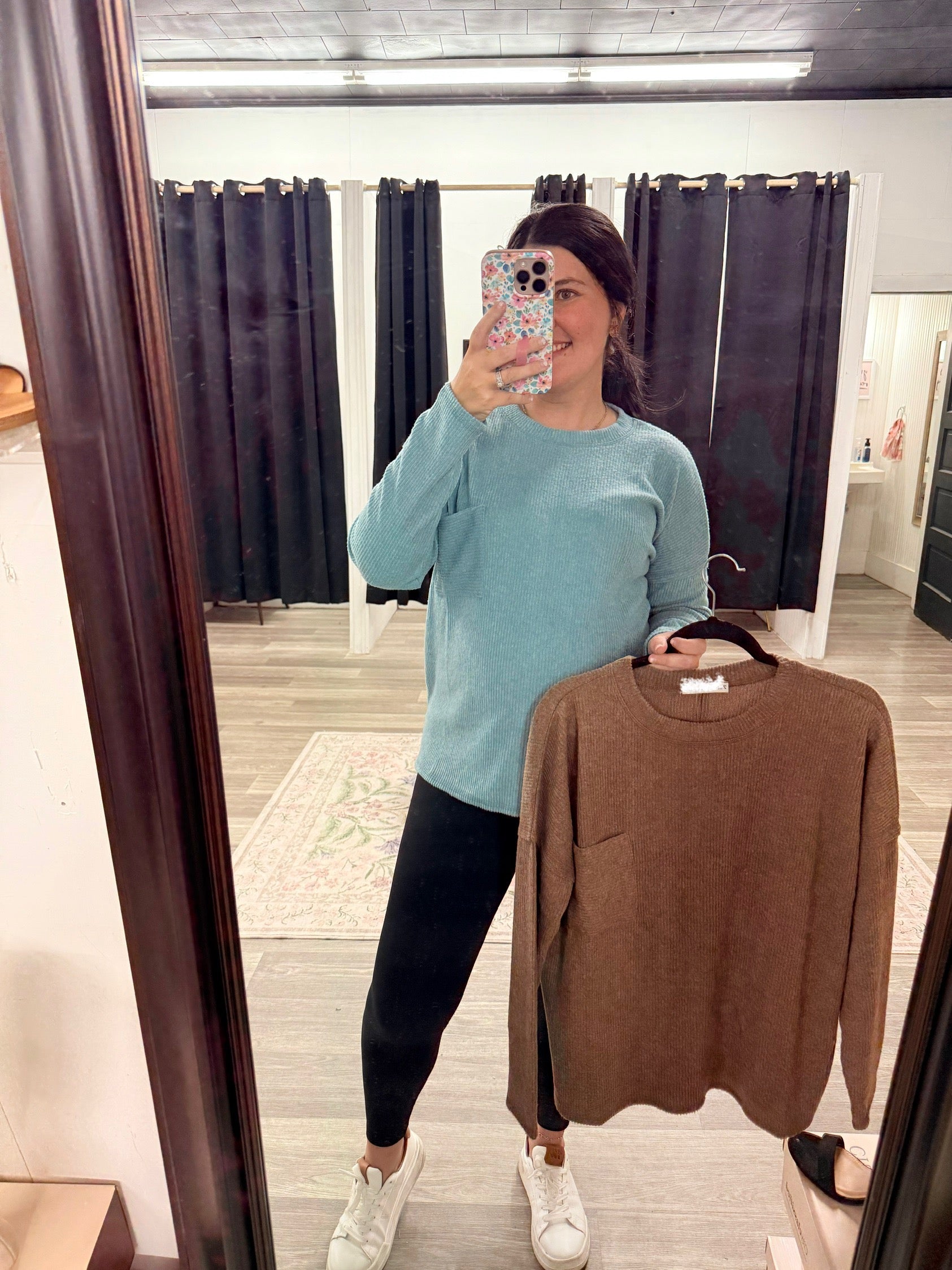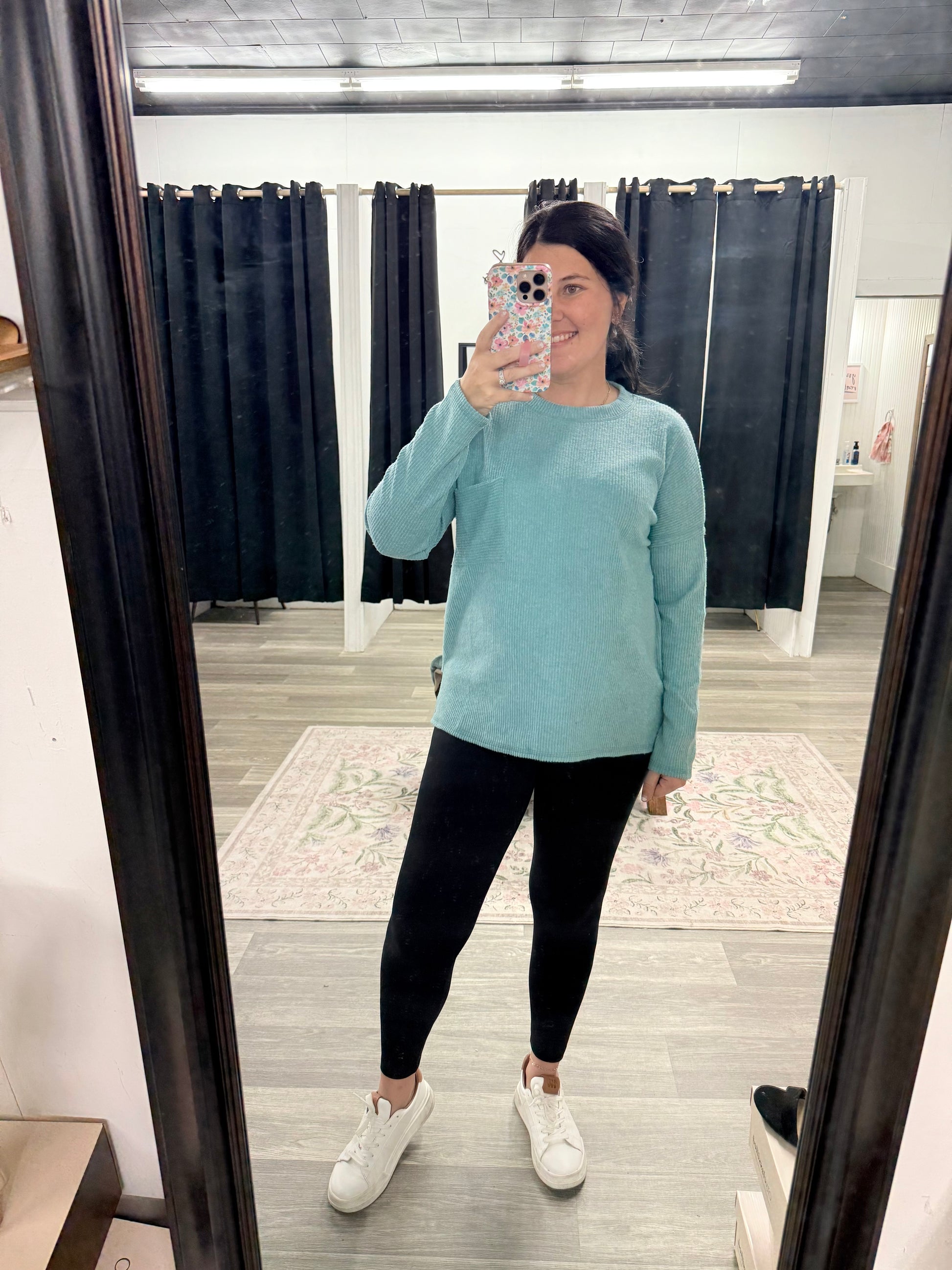 Ribbed Brushed Melange Pocket Top